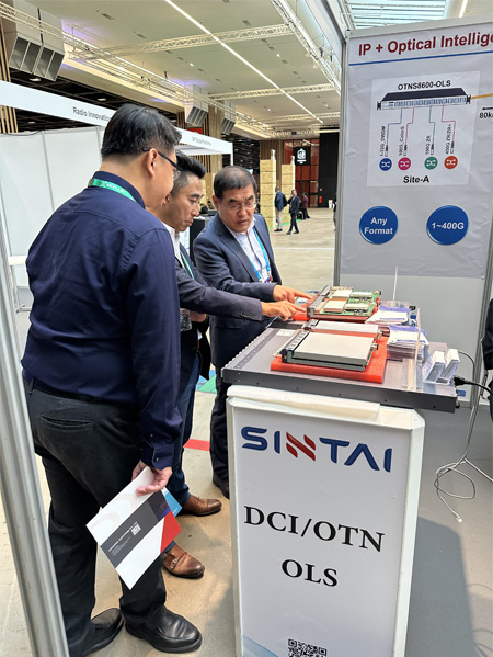 Als bekannter Ausrüstung lieferant in der optischen Kommunikation branche hat Sintai seine DCI-Geräte und OLS-Geräte sowie zugehörige Boards bei Network X 2024 vollständig demonstriert. Das OLS-Gerät ist ein optisches Leitungs system für die Architektur eines offenen Transport netzwerks, ein hoch integriertes Box produkt mit mehreren Funktionen. Es erfüllt die Anforderungen des End-to-End-Managements und der schnellen Service bereitstellung und kombiniert Funktionen wie Services chutz, optische Kabel überwachung, und Kanal leistungs überwachung, um eine transparente Service übertragung sowie eine bequeme Bedienung und Wartung zu erreichen.